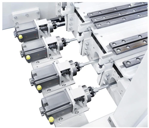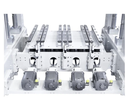 El sistema puede adaptarse de manera flexible a diferentes necesidades de producción de productos de concreto. ● Ocho unidades de vibración, con equilibrio mecánico ajustado individualmente mediante ocho servoaccionamientos ● Ocho ejes de motor con acoplamientos elásticos ● Ocho servomotores, cada uno montado en una viga transversal de aislamiento de vibraciones externa en el bastidor del motor. ● La mesa vibratoria no requiere baño de aceite (Ecológica)