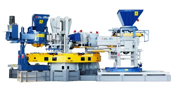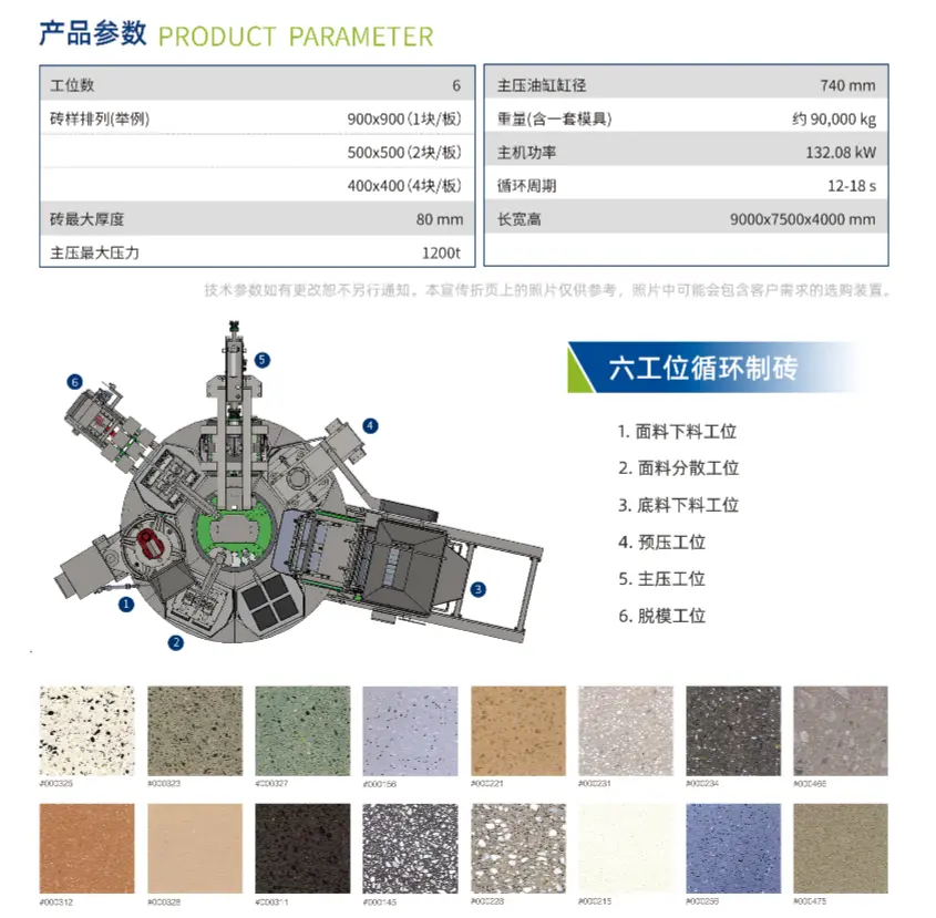 La prensa estática de mesa giratoria HP-1200T separa creativamente el proceso de fabricación de ladrillos en 7 estaciones, dispuestas en un diseño circular, lo que reduce el espacio del piso y tiene un área de moldeo y un rango de altura de moldeo grandes, lo que garantiza que se cumplan los diversos requisitos de los clientes para productos de bloques de concreto de imitación de piedra, llenando el vacío en las máquinas rotativas domésticas de ladrillos de imitación de piedra de siete estaciones. Su estándar de grupo formulado "Máquina formadora de bloques de concreto con prensa estática rotativa de múltiples estaciones T/CCMA 0125-2022" ha sido seleccionado como uno de los 100 proyectos de demostración de aplicaciones estándar de grupo del Ministerio de Industria y Tecnología de la Información en 2023.