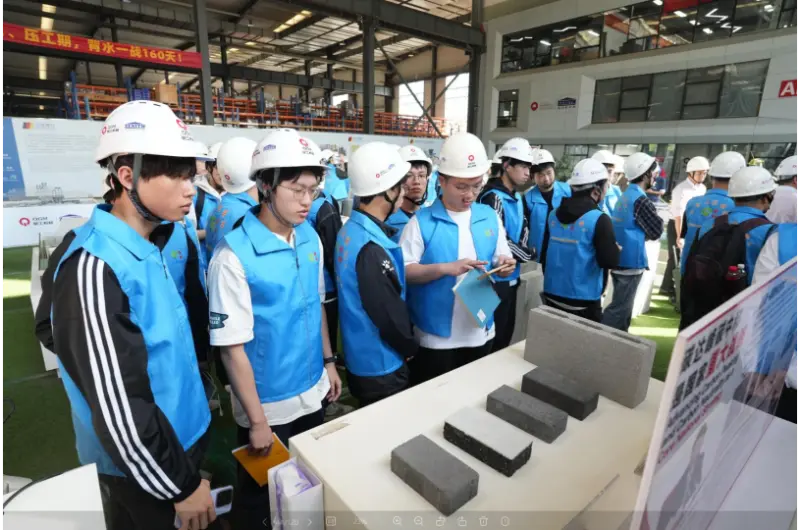 En el taller de fabricación de equipos, los visitantes recorrieron el laboratorio, el taller de ensamblaje y el taller de depuración, y conocieron todo el proceso, desde el análisis de la materia prima hasta los juegos completos de equipos automatizados de fabricación de bloques. En el área de muestra, se exhibieron diversas especificaciones y aplicaciones de productos fabricados con la maquinaria de fabricación de ladrillos de la compañía, incluidos ladrillos para paredes interiores y exteriores, adoquines y bordillos para exteriores, materiales para conservación de agua y control de inundaciones, protección ecológica de taludes y muros de contención por gravedad. En la sala de conferencias se proyectó un vídeo promocional de la empresa.