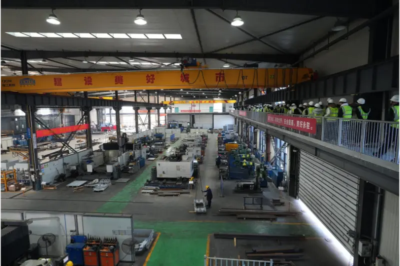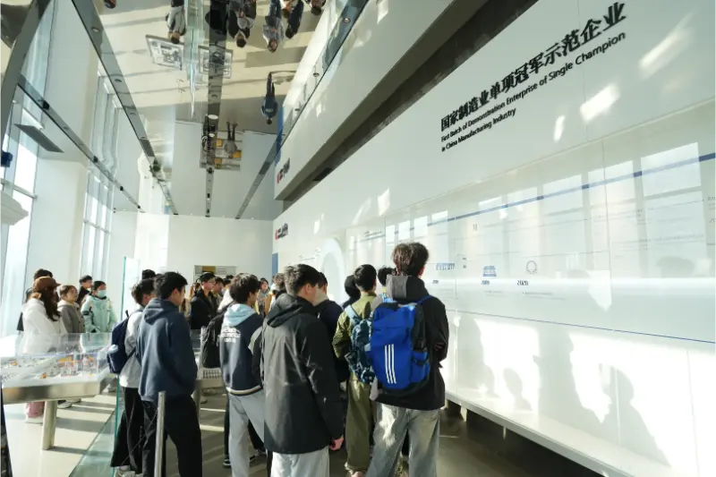 Posteriormente, los profesores y alumnos visitaron el taller de mecanizado, adentrándose en la primera línea de la fabricación inteligente. En el taller, los centros de mecanizado CNC y las líneas de montaje automatizadas operaban a alta velocidad, los brazos robóticos completaban con precisión diversas operaciones y el sistema de producción digital mostraba el progreso de la producción y los datos de seguimiento de la calidad en tiempo real, lo que demuestra el efecto sinérgico de una "fábrica verde" y un "taller inteligente". Los expertos técnicos de la compañía guiaron a los profesores y estudiantes a lo largo de todo el proceso, desde el procesamiento de la materia prima hasta el ensamblaje del equipo, enfocándose en explicar la aplicación de tecnologías clave como la interconexión de equipos CNC y la detección precisa del estado de producción. Los estudiantes interactuaron activamente con los expertos técnicos, discutiendo temas como la optimización del procesamiento y las técnicas de mantenimiento de equipos, creando una sólida atmósfera de aprendizaje en el sitio.
